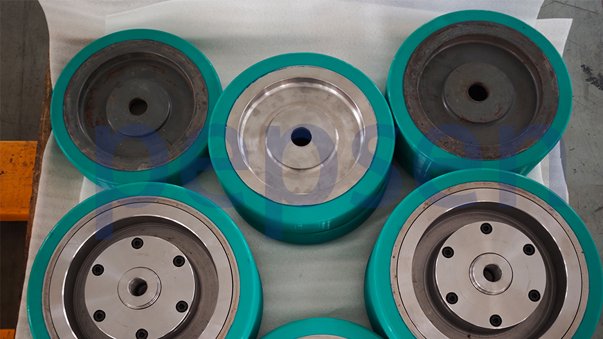 其次,聚氨酯材质的包胶轮有很好的高承载力,在烘干设备工作过程中不会出现打滑,无偏移等现象。同时,聚氨酯材质轮子有很好的耐磨和长寿命,在烘干机内高频摩擦环境下,聚氨酯耐磨性远超普通橡胶,减少了更换的频率,降低了停机的维护时间。