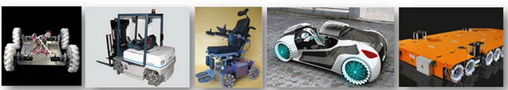 依靠各自机轮的方向和速度,这些力的最终合成在任何要求的方向上产生一个合力矢量从而保证了这个平台在最终的合力矢量的方向上能自由地移动,而不改变机轮自身的方向。在它的轮缘上斜向分布着许多聚氨酯滚轮,故轮子可以横向滑移。小滚子的母线很特殊,当聚氨酯轮绕着固定的轮心轴转动时,各个小滚子的包络线为圆柱面,所以该轮能够连续地向前滚动。麦克纳姆轮结构紧凑,运动灵活,是很成功的一种全方位轮。有4个这种新型轮子进行组合,可以更灵活方便的实现全方位移动功能。